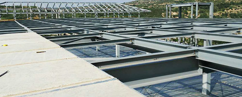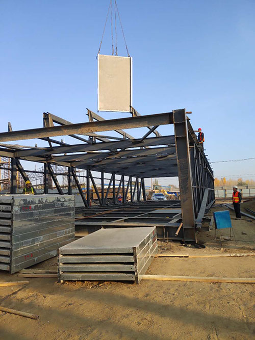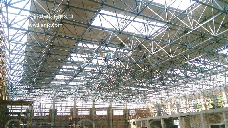鋼骨架輕型板適用于輸煤棧橋、公共民用等建筑圍護屋面、樓面、墻面.鋼骨架輕型板由輕型鋼骨架、冷拔鋼絲網(wǎng)、改性水泥珍珠巖復合芯材(專有技術)、復合抗?jié)B耐磨涂層(專有技術)組成.鋼骨架輕型板集輕質(zhì)、承重、節(jié)能、防火、隔聲、泄爆、抗震等功能于一體,既保持了傳統(tǒng)鋼筋混凝土構件安全度高、使用壽命長的優(yōu)點,又滿足了現(xiàn)代建筑對輕質(zhì)、節(jié)能、環(huán)保的要求。